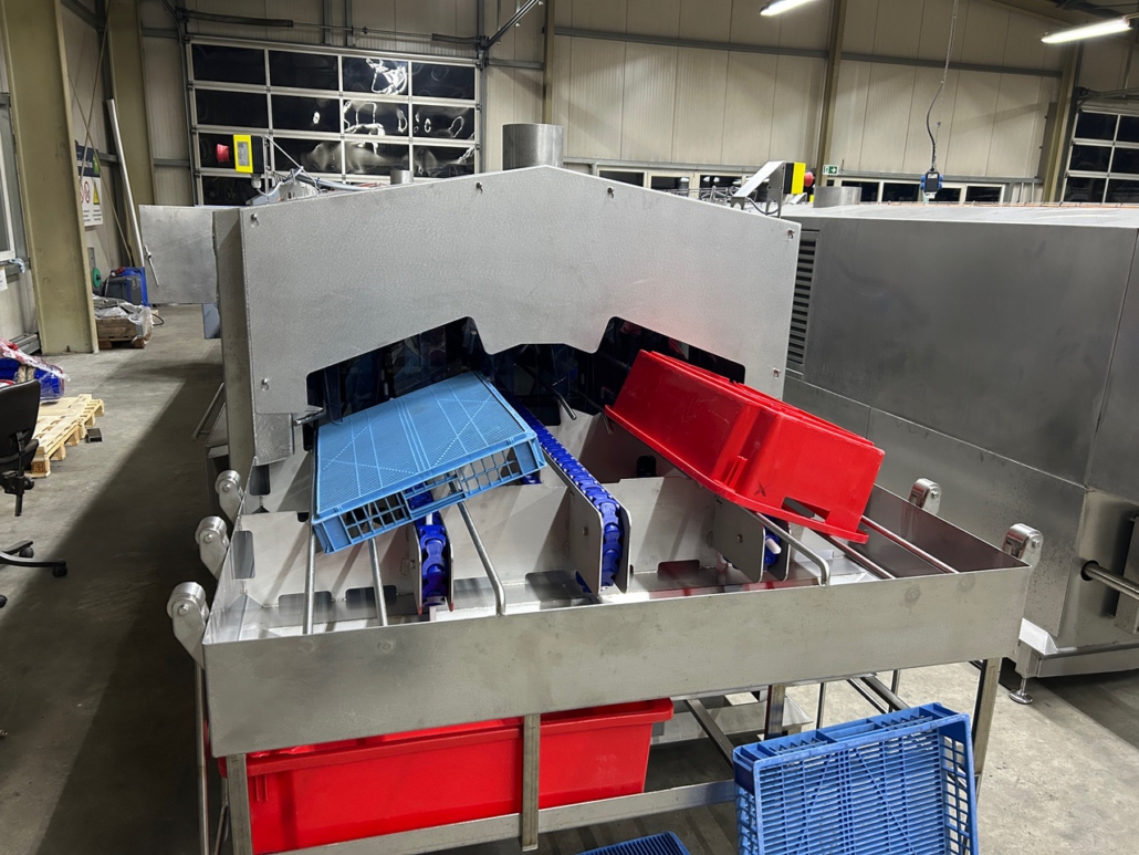 Die Anlage kann mit allerlei Tricks eine Vielzahl von Behältern und Paletten gründlich waschen, spülen und trocknen.